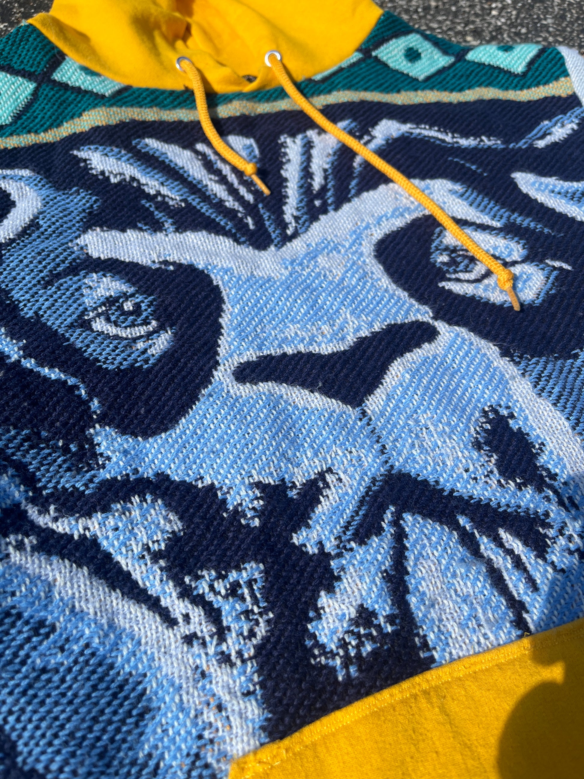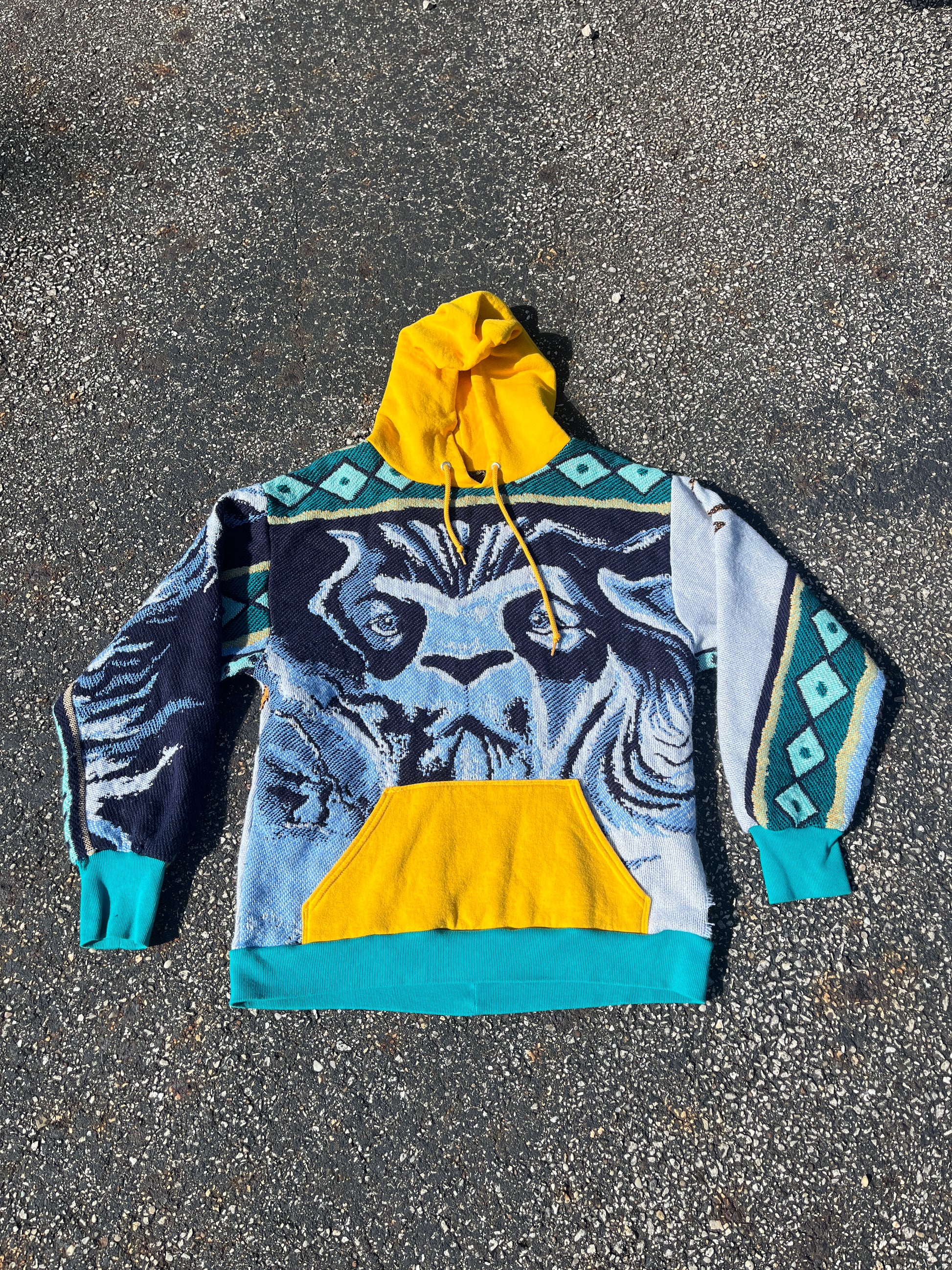 One of a kind reworked tapestry hoodie made from a vintage Blanket